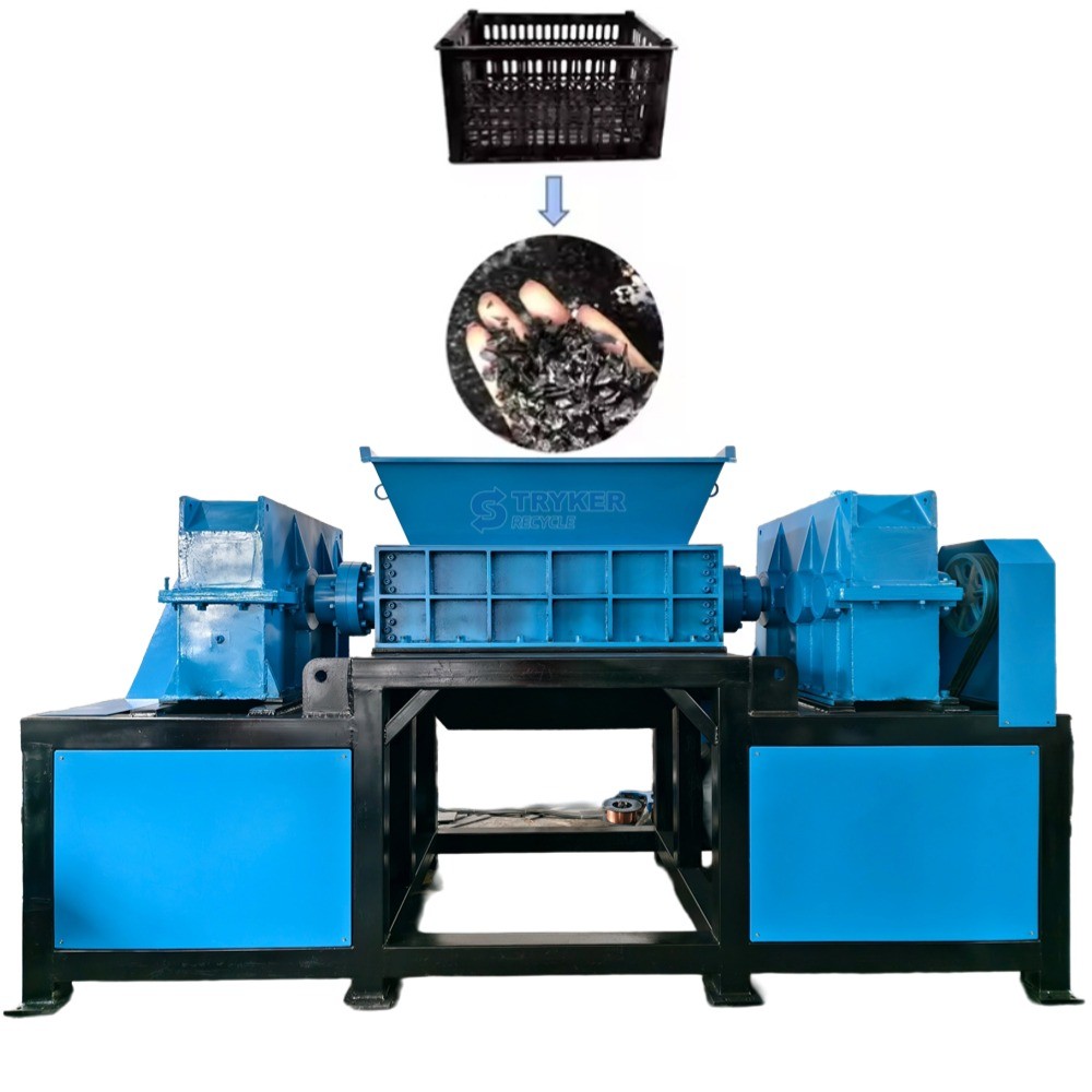 The large double-shaft shredder is designed for heavy industry, mining, construction waste treatment and large recycling enterprises.It adopts double-roller synchronous reverse rotation technology, has super tearing force and wide adaptability.It can efficiently crush high-hardness and large-volume materials such as metal scraps, building concrete, wood, tires, and electronic waste, and achieve material reduction,harmlessness and resource processing.